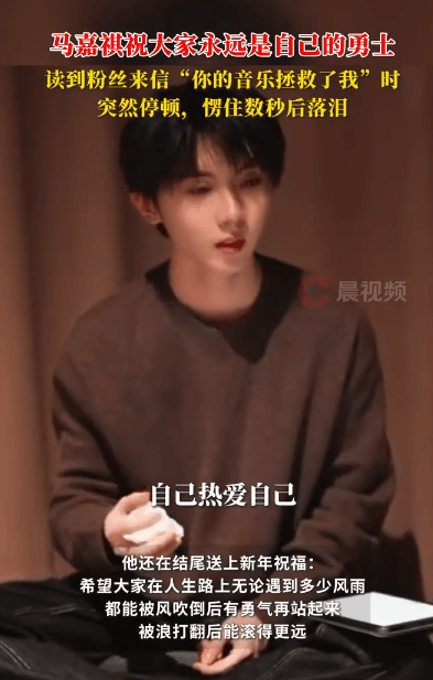 马嘉祺在节目《有回声》中读到粉丝来信:“你的音乐拯救了我”时突然停顿,愣住数秒后落泪。