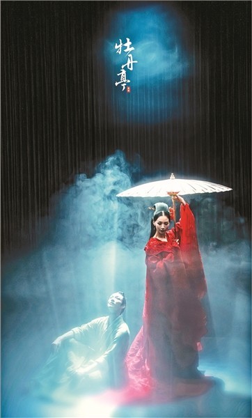 开场前,灯光暗,投影仪射出的光线丝丝缕缕地穿过观众席上空,继而又穿透纱幕,抵达第二层幕的褶皱,影影绰绰地浮现出“牡丹亭”三个字,如月亮的倒影荡漾在春天的水面上,又像风儿正吹皱这亭边的一池春水。