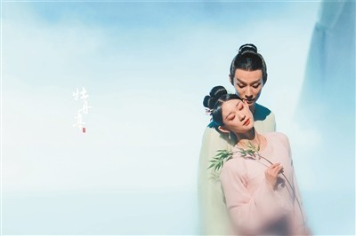 舞剧《牡丹亭》的海报设计某种程度上也延续了这种“少即是多”的笔法,画面绝大部分都是仿古卷的浅棕色,仅以身着淡粉和淡绿的男女主角很小的身影提亮。正是因为这种精神层面高度统一的审美,才使得全剧的服装、造型、舞美、灯光、多媒体、海报等虽由不同的艺术家操刀,却又圆融无碍地整合成一个有机体,相辅相成,和谐共造出一个绝美的“亭”。