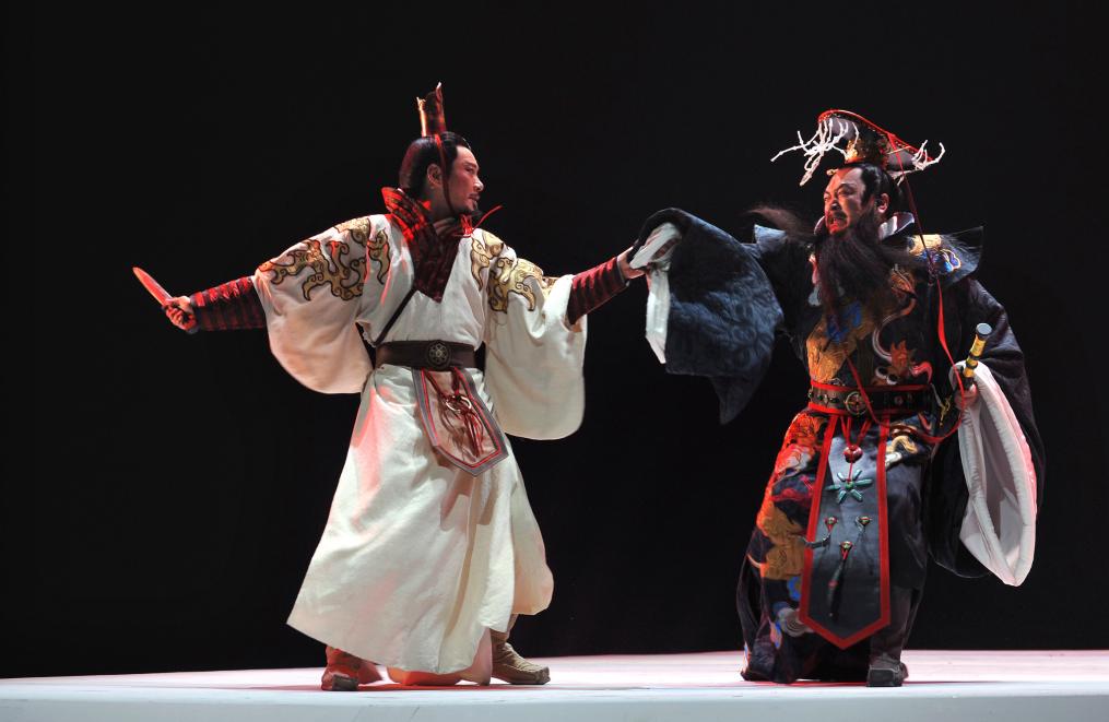 2011年8月31日,莫言编剧、任鸣执导的话剧《我们的荆轲》在首都剧场首演。新华社发(李晏 摄)