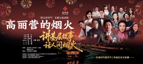 1月29日,由顺义区委宣传部、顺义区文化和旅游局、顺义区城市管理指挥中心指导,顺义区高丽营镇人民政府主办,北京市花蔚文化创意有限公司承办的“顺义好风气”主题公益话剧《高丽营的烟火》在顺义大剧院隆重开演。